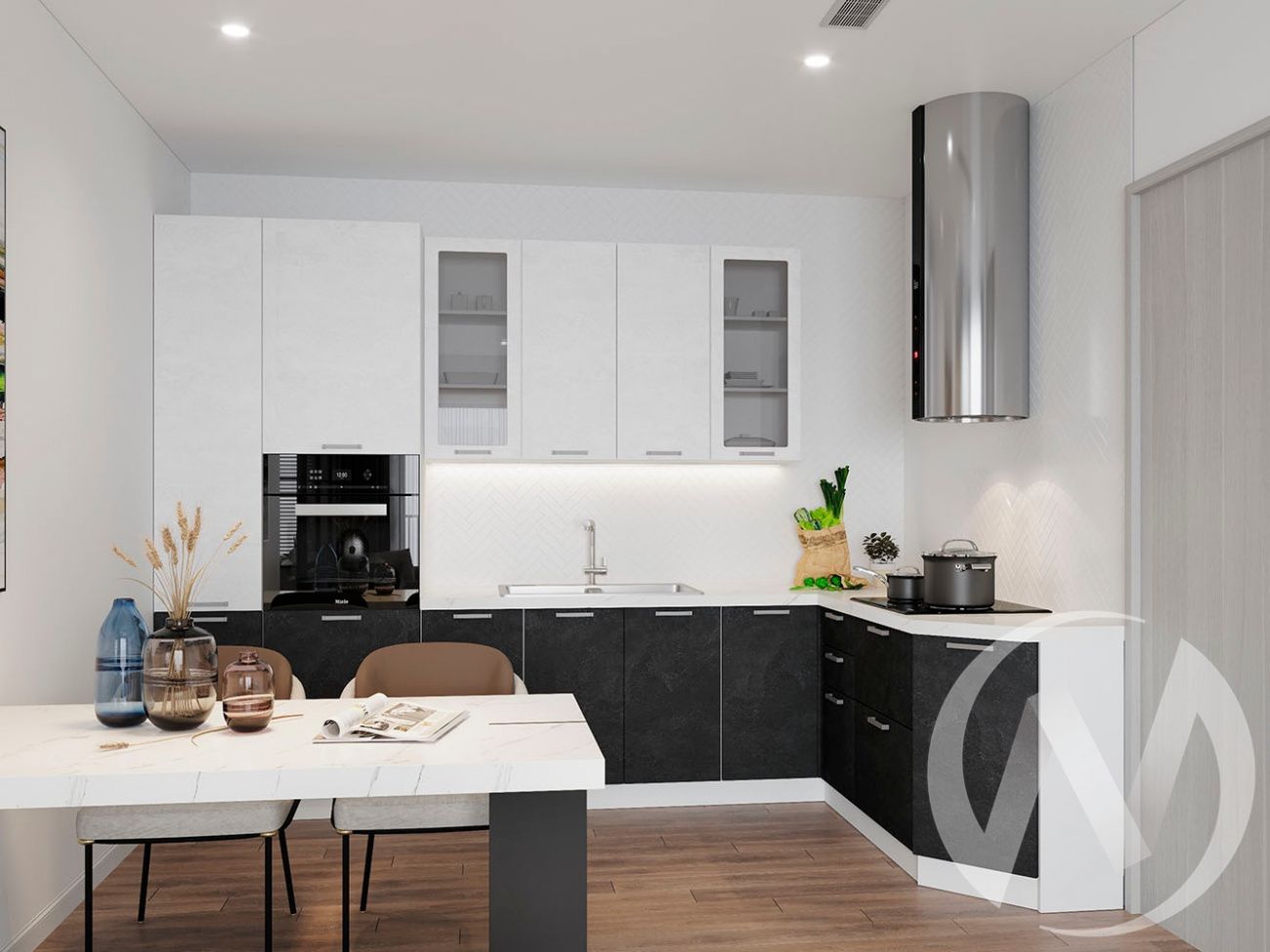 Кухня "Лиана": Шкаф нижний угловой 990М, ШНУ 990М (бетон графит/корпус белый)